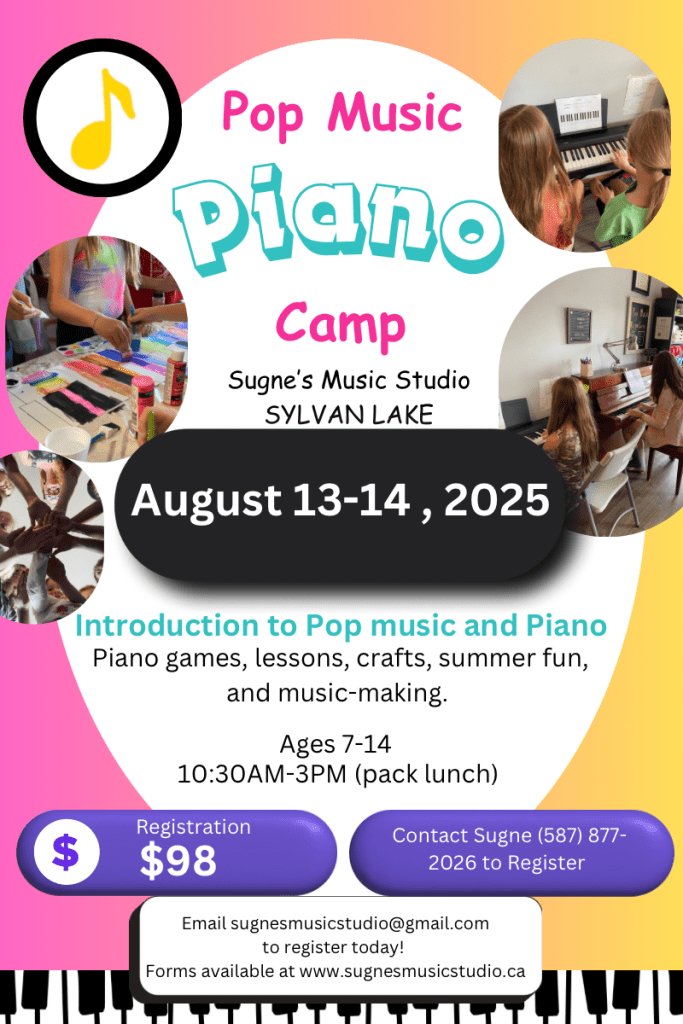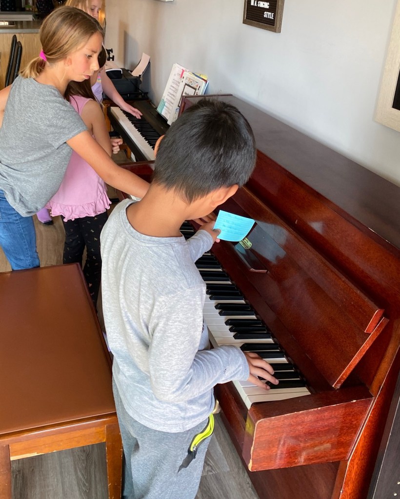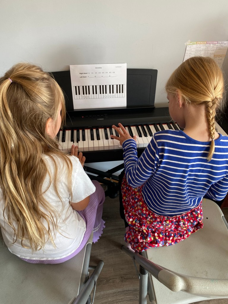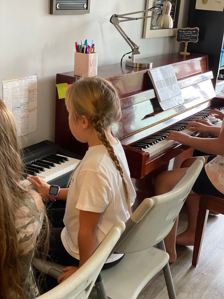 Learn to play a pop song on the piano (with the option to sing along too!), learn how to bucket drum/paint their own drum to take home, learn music theory, learn how to play as a band, learn about the piano & other instruments, have water fun including water balloons, play team games, paint a giant piano painting, make music crafts, make new friends, AND MORE!